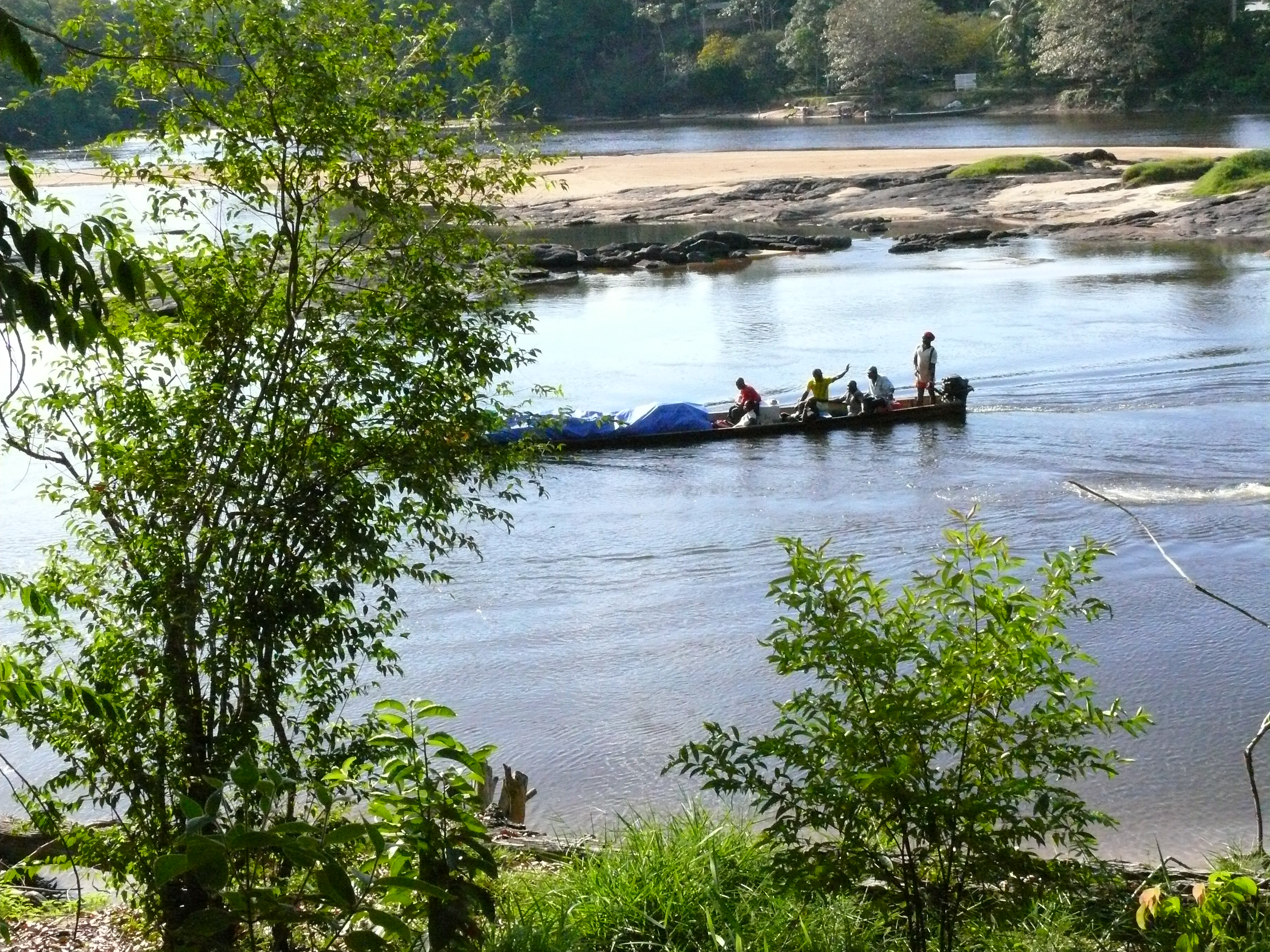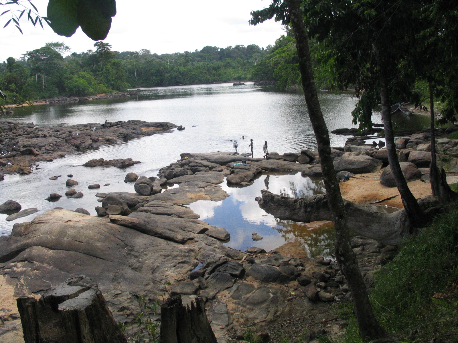 Santigron is gelegen aan de Saramaccarivier en betekent
