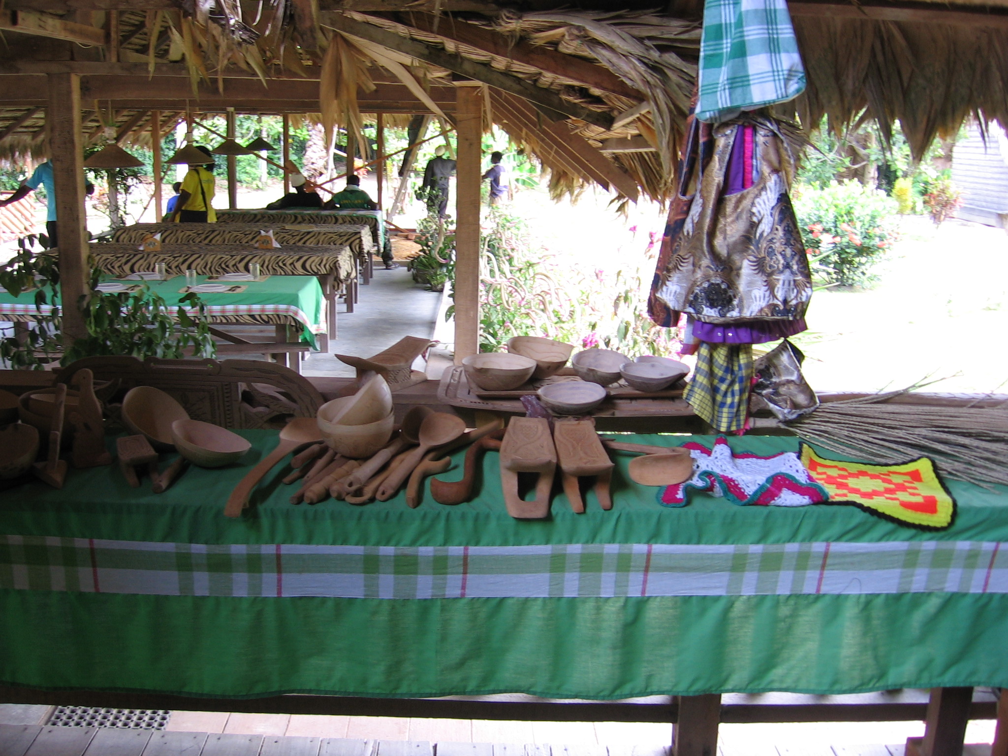 bewonderen, waaronder het houtsnijwerk dat door de dorpelingen gemaakt wordt.