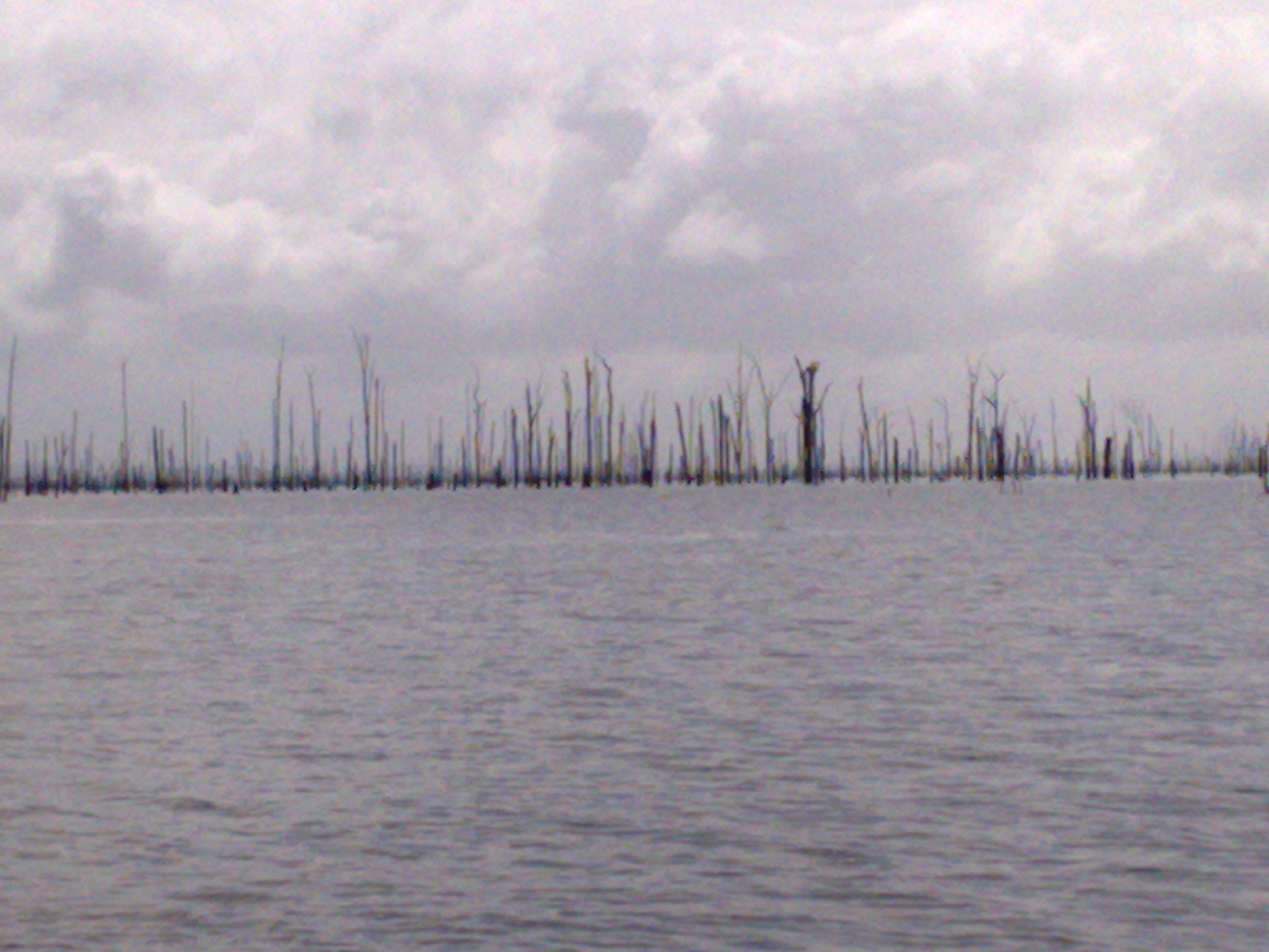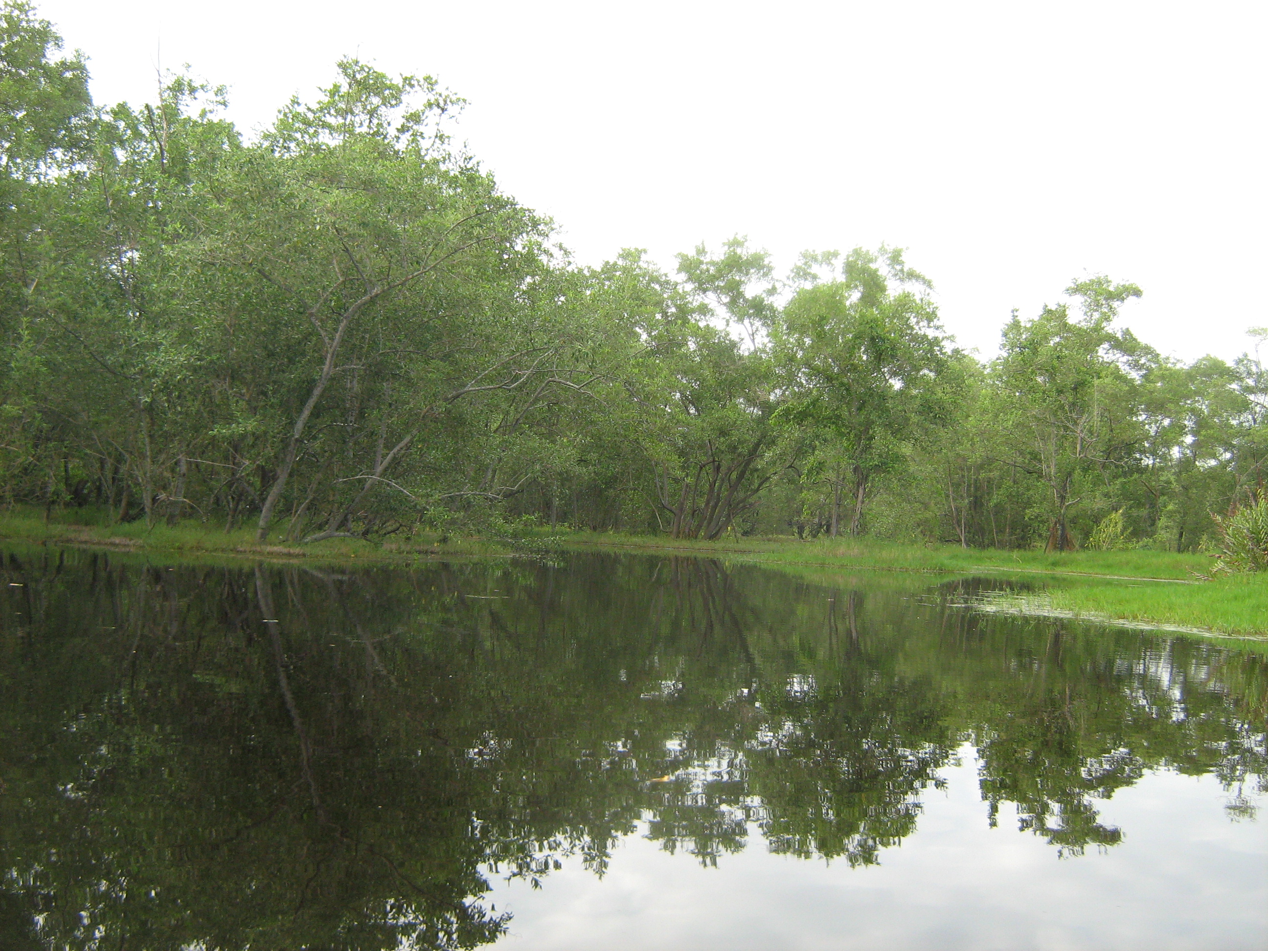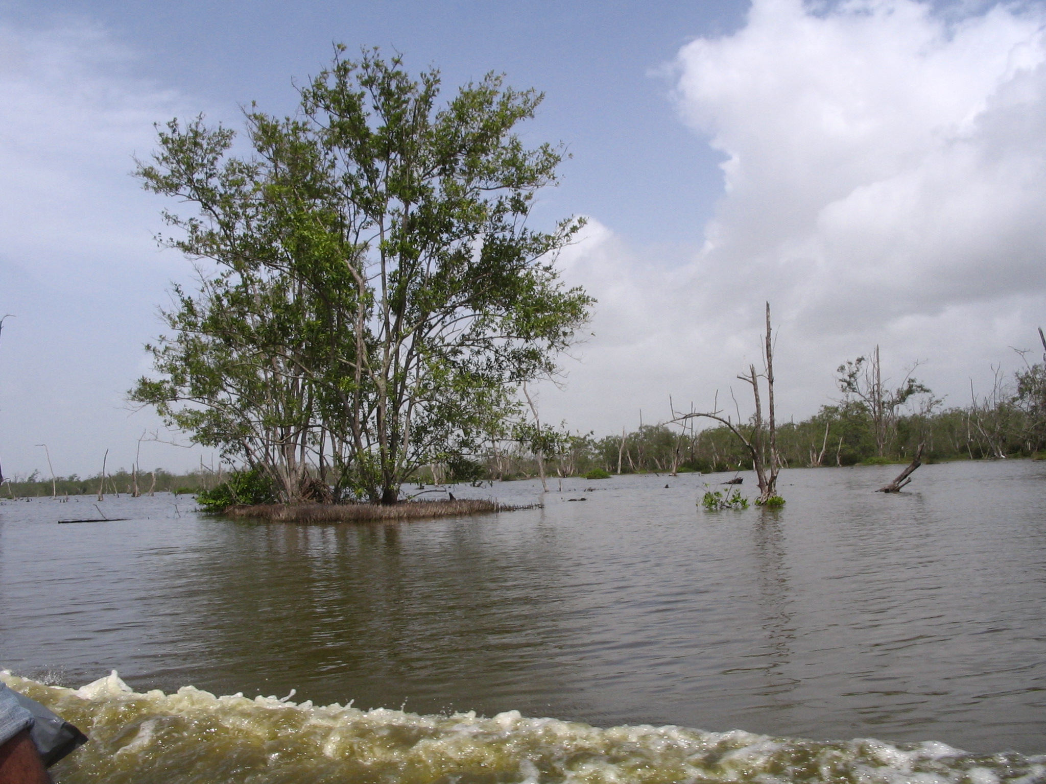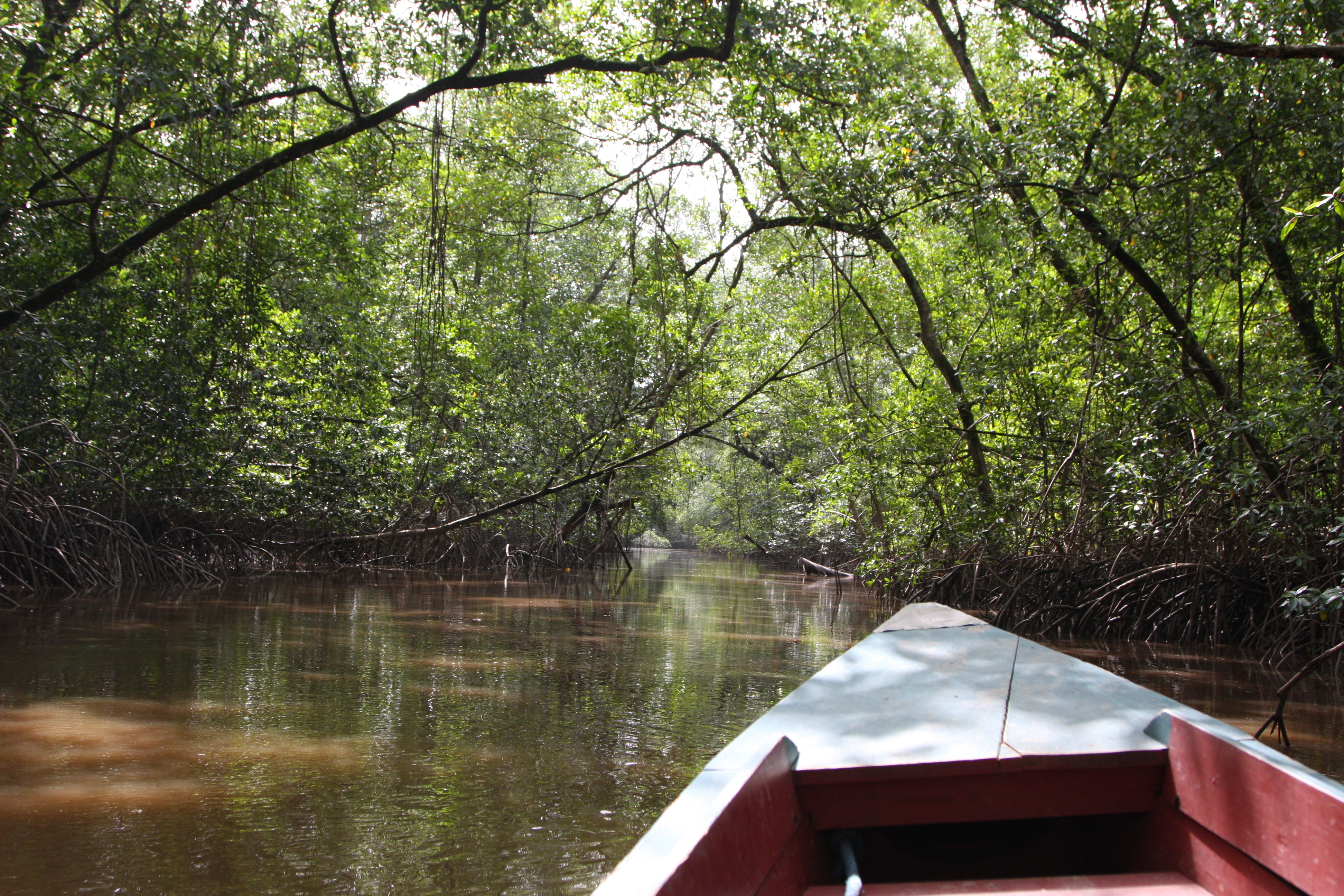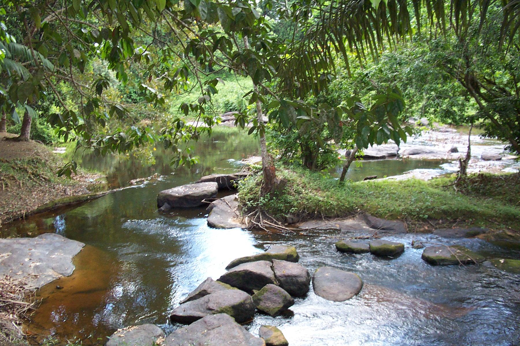 Surinamerivier, niet ver van Paramaribo. Het is geen peperplantage, zoals u