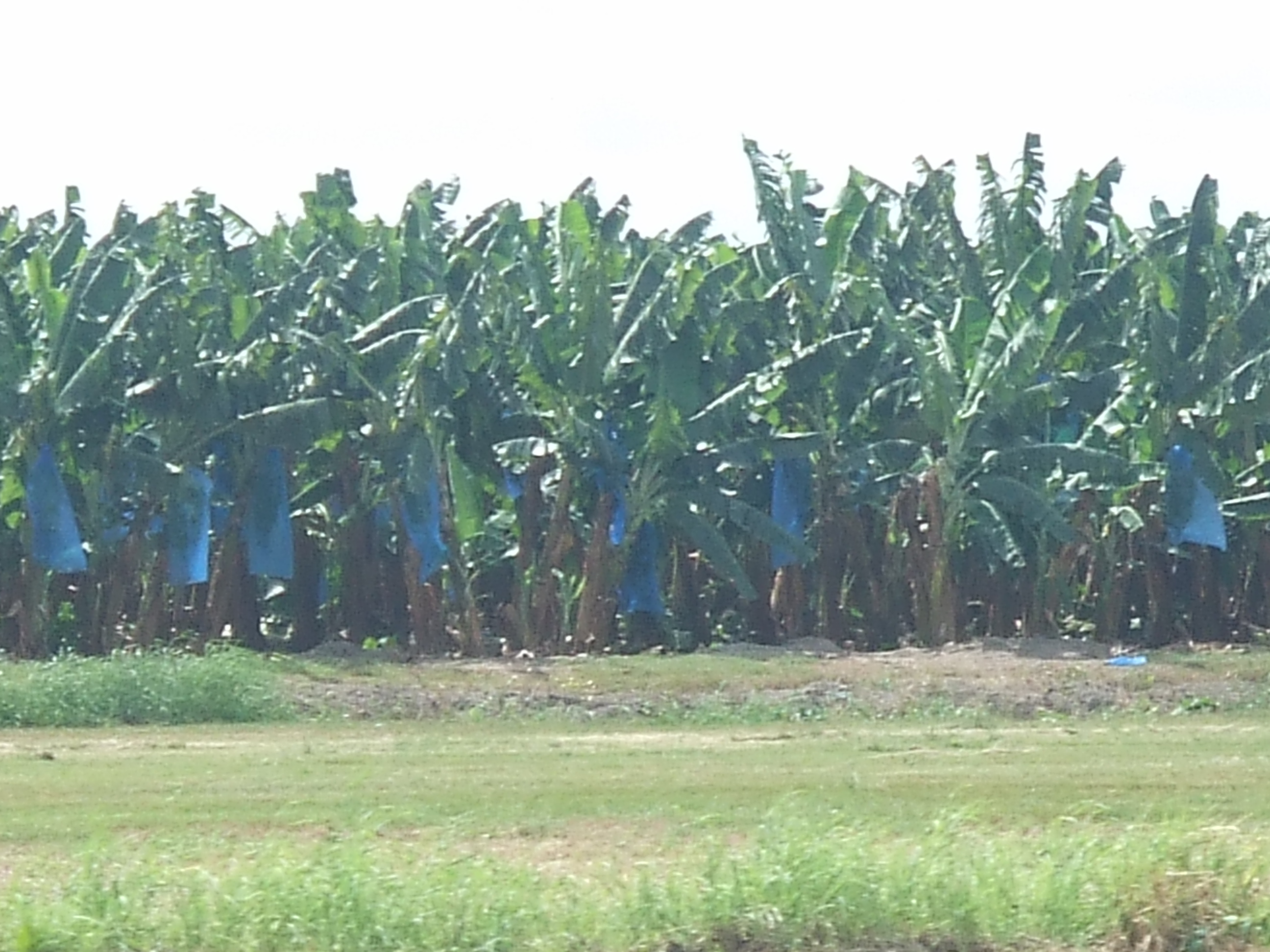 op een van de paden die dwars door de plantage zijn aangelegd.